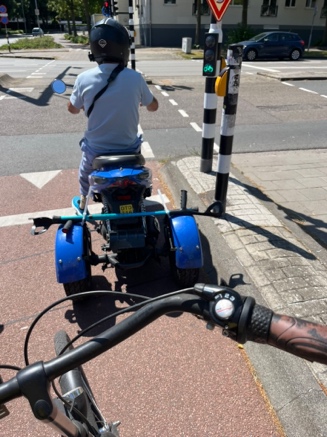 Tijdens een fietstocht vanmiddag werd ik ingehaald door een mooie blauwe bromfiets met drie wielen. Achterop had hij twee krukken vastgemaakt. Ik kreeg het beeld dat deze man een gebrek had (misschien kon hij heel moeilijk lopen) maar dat weerhield hem er niet van om op pad te gaan. Misschien had zijn beperking hem juist wel uitgedaagd om op zoek te gaan naar middelen om toch te doen wat hij wilde doen.